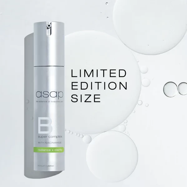 Shower skin with luxurious hydration and combat signs of aging with Asap Super B Complex. Infused with anti-inflammatory and antioxidant properties, this replenishing formula nourishes the skin, diminishing dehydration and restoring a youthful, vibrant radiance. Unlock a portrait of splendor with this empowering elixir.