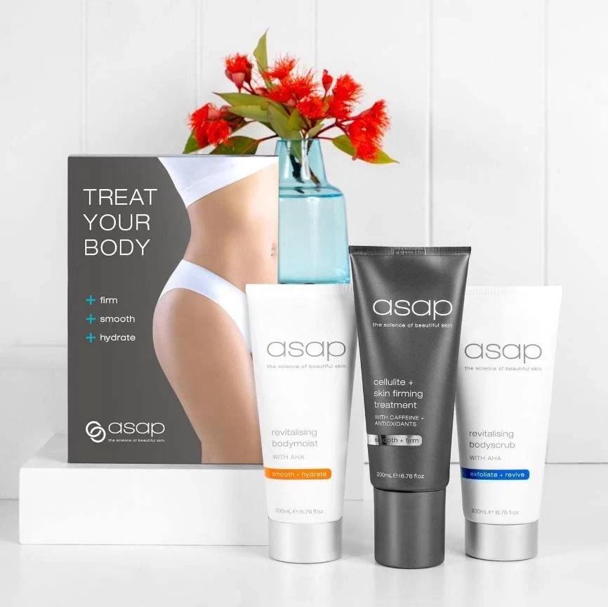 Valued at $199, the asap treat your body pack offers the perfect combination of products for having your skin primed summer-ready. This limited edition set includes the asap body scrub, revitalising body moisturiser, and the recently added asap cellulite + skin firming treatment, ensuring that your skin will feel smooth, firm, and hydrated.
