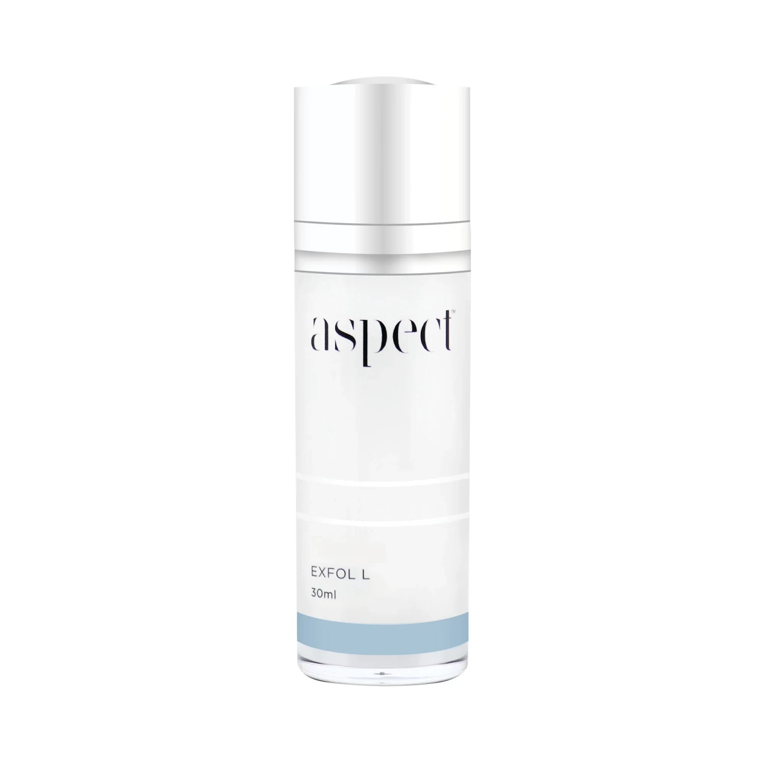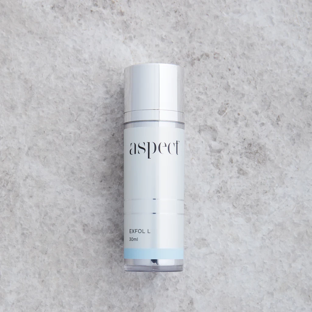 Transform skin with this quick-acting, liquid exfoliator leveraging the buffing & hydrating properties of Alpha Hydroxy Acids (AHA) — such as Lactic Acid, Sugar Maple Extract & Sugar Cane Extract. Aspect’s unique Australian active botanical superfood blend offers an exquisite sensory experience plus vitamins & antioxidants to nourish your skin. Enjoy a more vibrant, luminous complexion — all in the comfort of your evening skincare routine! Exfol L is an essential treatment that works wonders while you sleep!