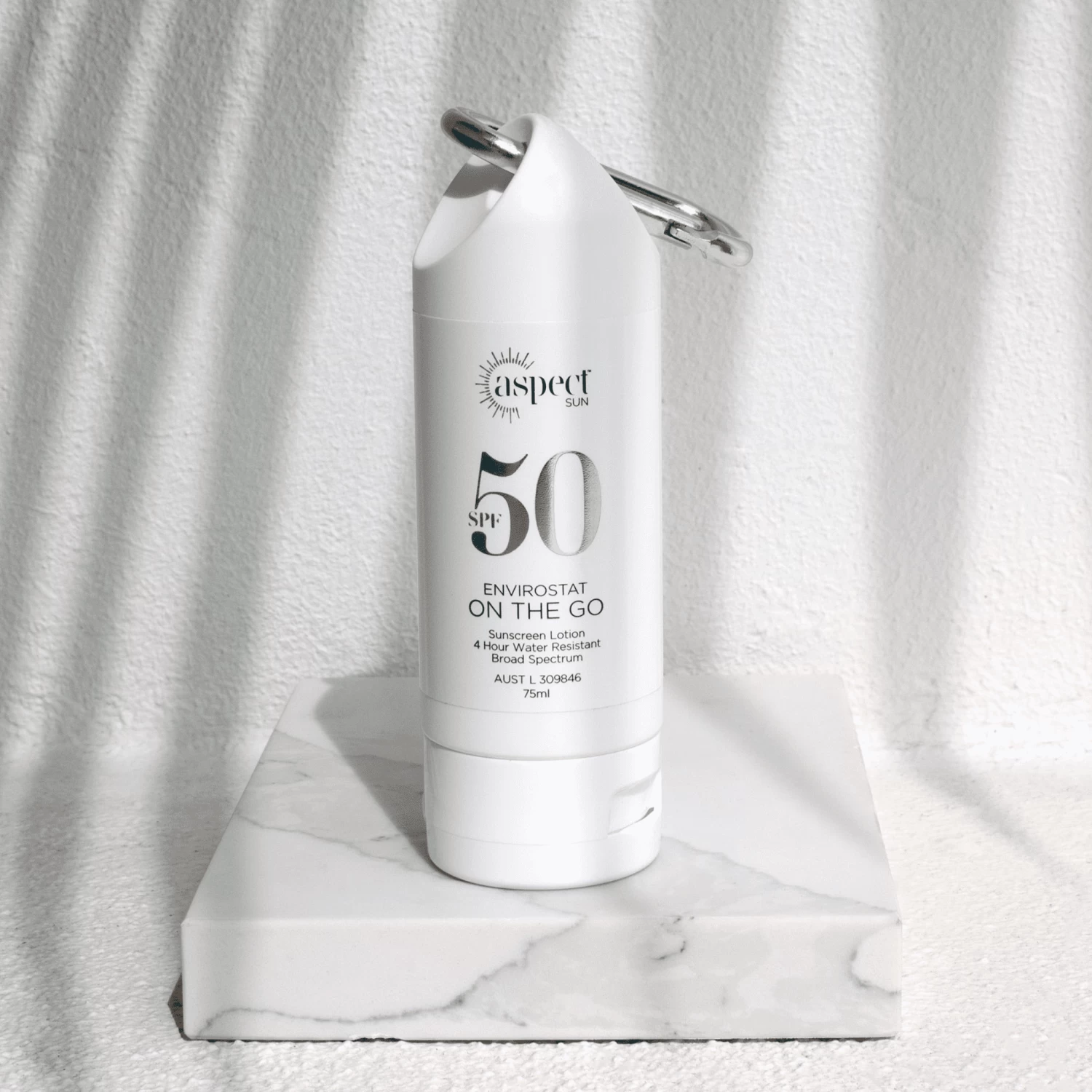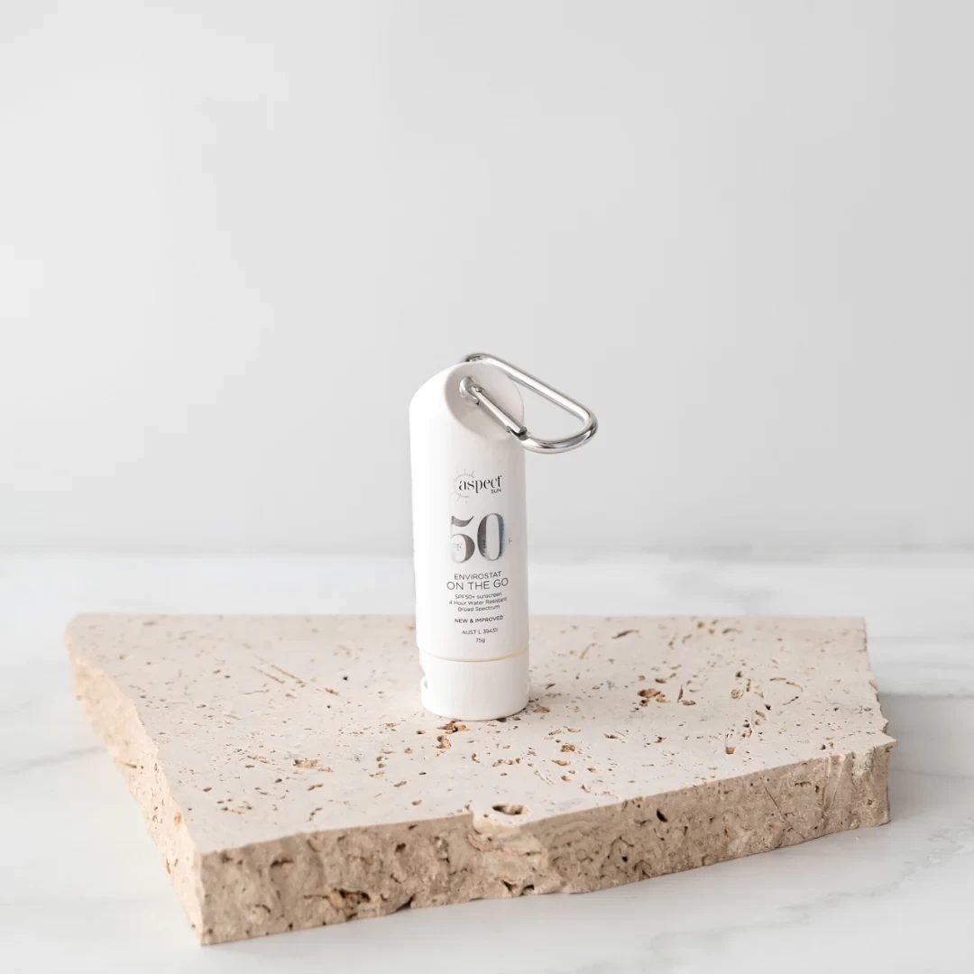 Aspect Sun Envirostat® On the Go SPF 50+ is a featherweight chemical cream that guards you from every angle. Plus, vitamin E acts as an extra layer of defense, blocking out free radicals and environmental damage. Throw it in your bag for 4 hours of water-resistant protection- perfect for gym trips, sightseeing, or just living life!