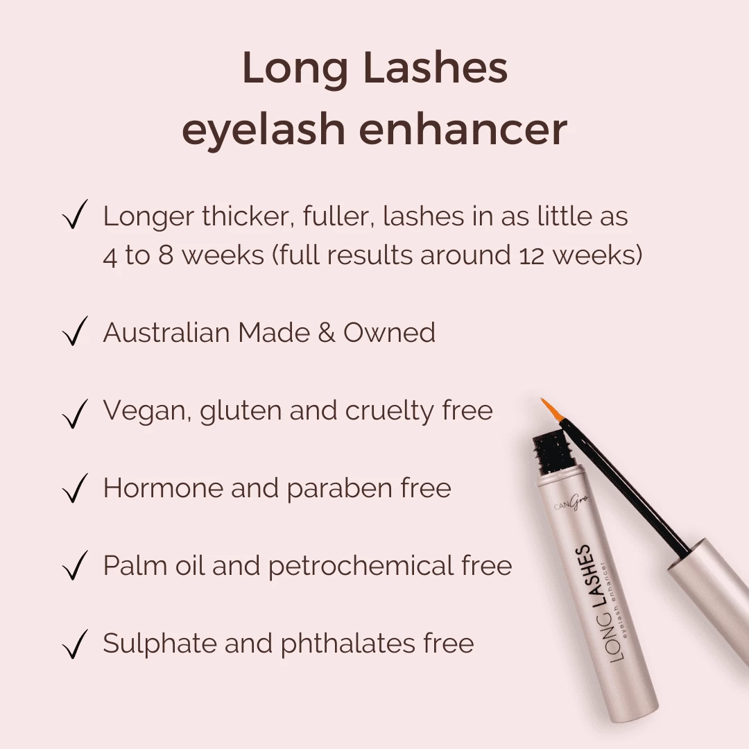 Discover the luxurious, nourishing power of CanGro’s best-selling Long Lashes Eyelash Enhancer. This exquisite formula, lovingly free of hormones, petrochemicals, parabens, sulphates, phthalates, and more, will help strengthen, condition, and stimulate your lashes, making them longer, fuller, and healthier in as little as 4 to 8 weeks. Pamper your eyelashes and make a grand statement with the gentle, artistic force of CanGro Long Lashes.