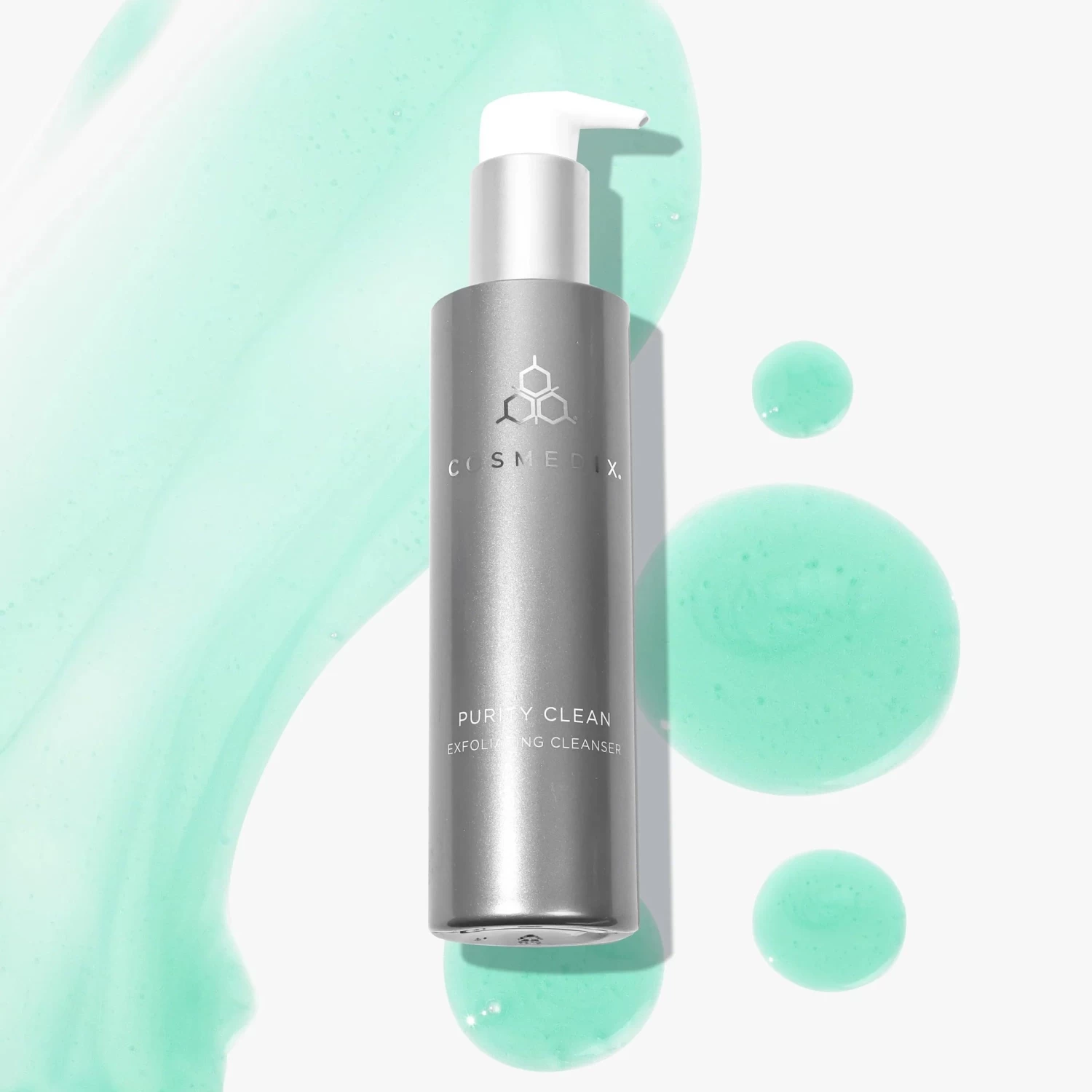 Give your skin an invigorating pick-me-up with Cosmedix Purity Clean! This dynamic Exfoliating facial Cleanser is the perfect way to lather away dirt, oil, and pesky pore-clogging impurities without zapping essential moisture. Formulated with an all-star combination of 5% L-Lactic Acid, Tea Tree Oil, and energizing Peppermint Essential Oil, Purity Clean produces a rich, refreshing foam to unclog congested pores, reduce excess shine, and bring out your complexion’s even-textured, vibrant glow. Show your skin a little TLC – it’s sure to thank you!