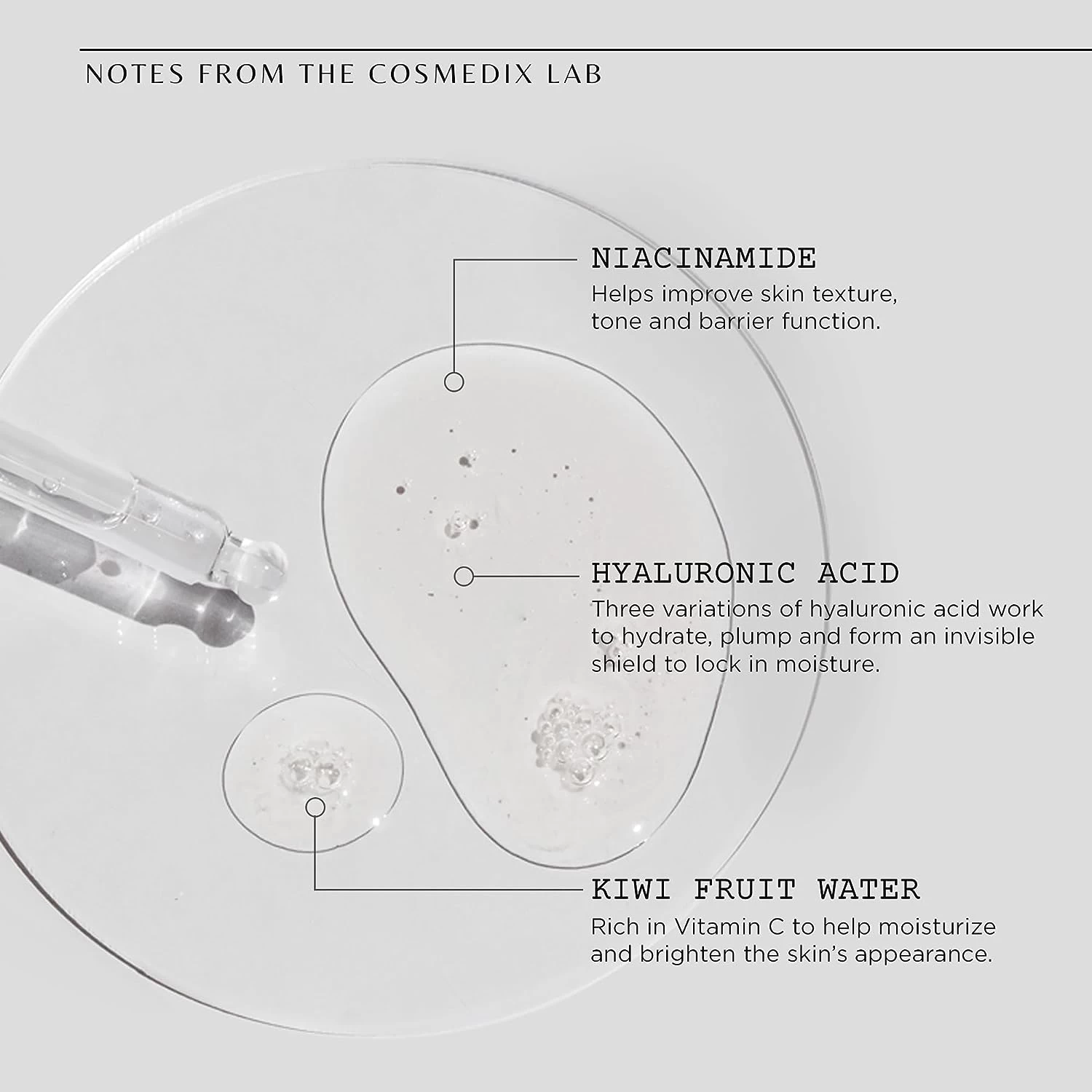 Elevate your skin care with Cosmedix Surge, a deeply hydrating and complexion-quenching booster that contains three forms of Hyaluronic Acid plus Kiwi Fruit Water and Niacinamide. Enjoy visibly plumper and more radiant looking skin, with the appearance of fine lines and wrinkles reduced. Reach new heights of hydration and healthy skin with Surge.