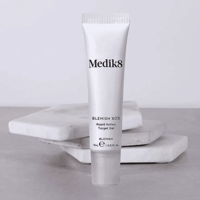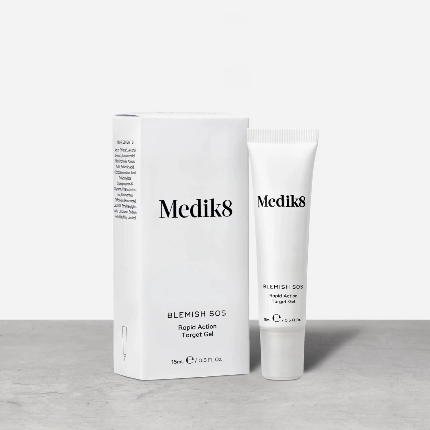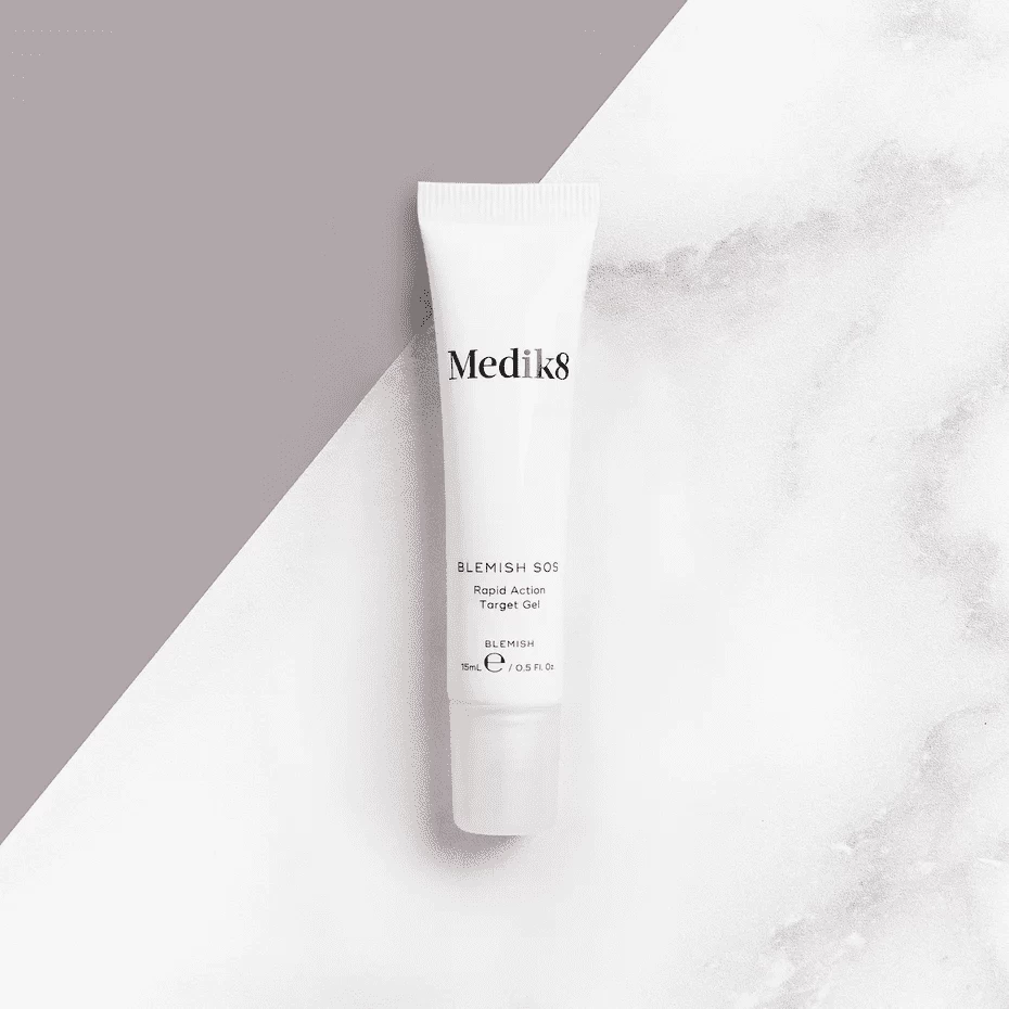Medik8 Blemish SOS™ Rapid Action Target Gel acts quickly to target blemishes at their source. Salicylic acid works to reduce bacteria and control oil, while decongesting blocked pores and calming inflammation for a clear complexion. The handbag-friendly tube can be used to target individual blemishes or problem areas, alone or under makeup. Plus, it dries to form a clear film over the spot for emergency rescue.