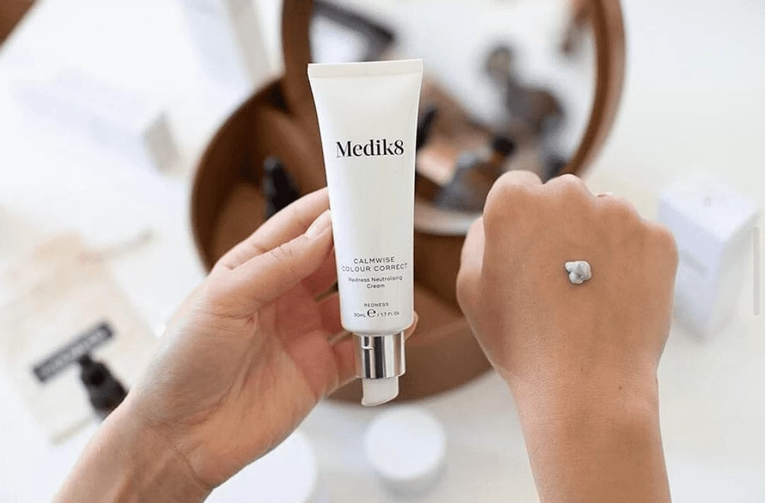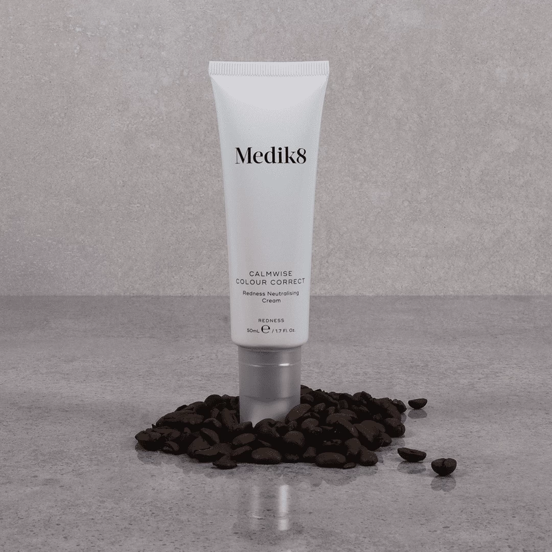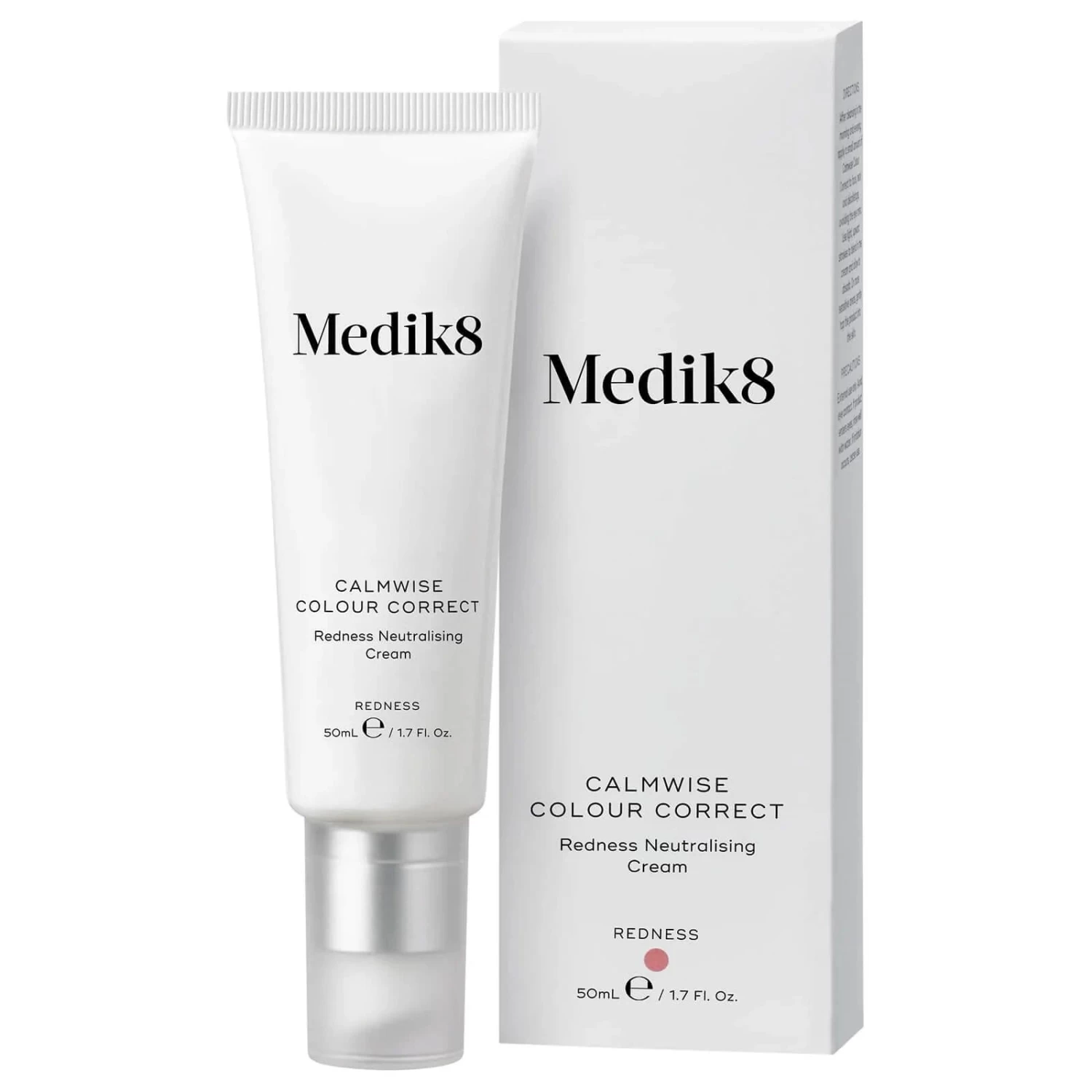 Medik8 Calmwise Colour Correct Redness Neutralising Cream blends green mineral pigments with skin tone on contact to quickly neutralise redness for an even complexion. It also contains 0.5% bakuchiol to provide clinical trial level results for anti-ageing without irritation. Plus, niacinamide and aloe vera soothe and calm skin while providing relief for rosacea, thread veins and other forms of redness. Clinical studies show that complementary colour theory, using light green mineral pigments, can reduce redness in skin when applied – Calmwise Colour Correct ensures complete blending with skin tone for an undetectable veil of protection.