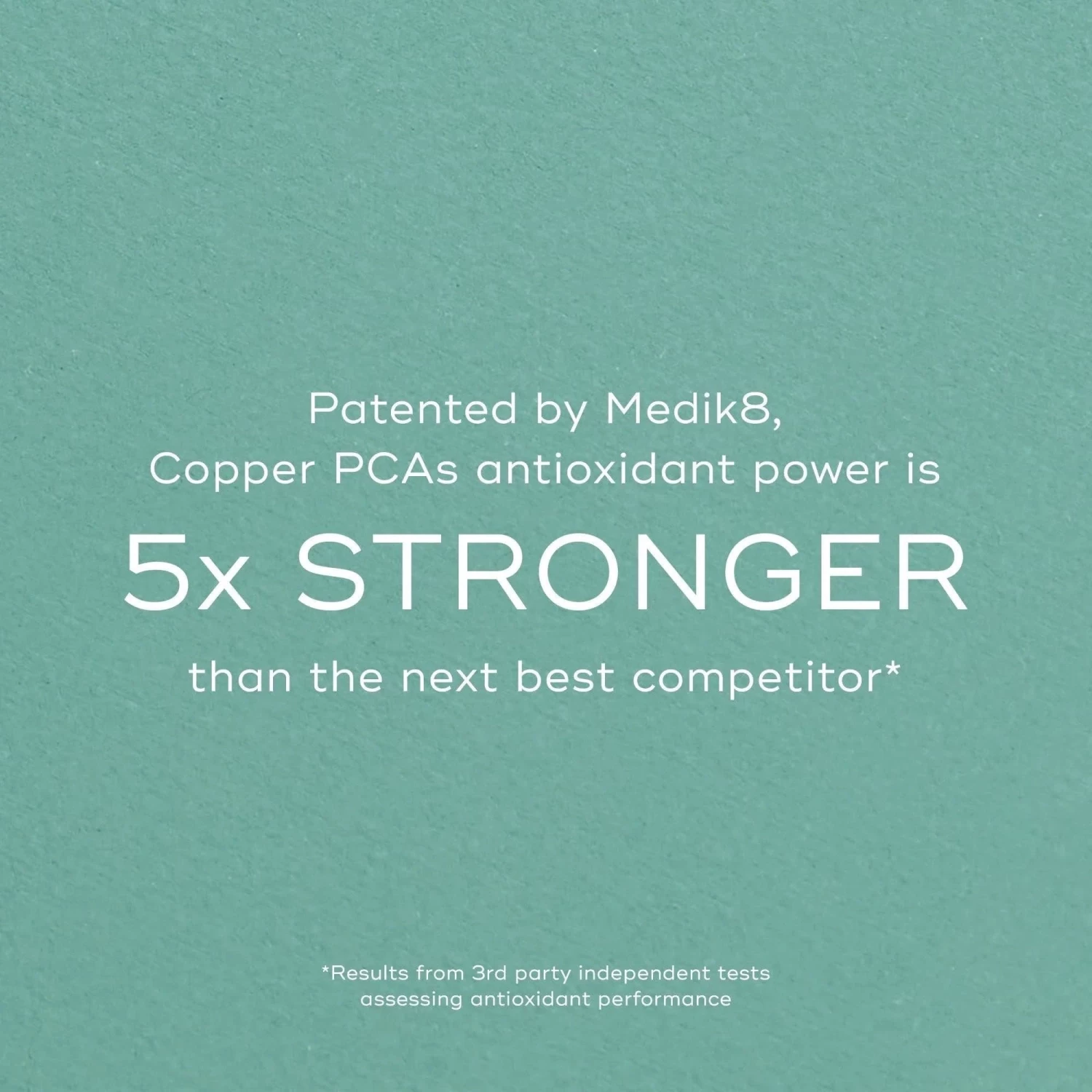 Recharge your skin with Medik8 Copper PCA Peptides, an advanced serum designed to energise skin for impressive anti-ageing effects. With the patented copper PCA mineral at its core, this serum combats a wide range of skin-harming free radicals for a smooth, youthful complexion with a radiant glow. The mineral also helps to replenish and reconstruct skin by providing cells with essential energy to support collagen and elastin production. As the pioneers of skincare innovation, Medik8 was the first to reveal the full anti-ageing power of copper PCA. Fortified with a complex of anti-ageing peptides like Matrixyl 3000, plus potent antioxidants like superoxide dismutase and dimethylmethoxy chromanol, the award-winning serum lifts, smooths and hydrates skin to reduce the look of fine lines and wrinkles. NO ARTIFICIAL FRAGRANCE.