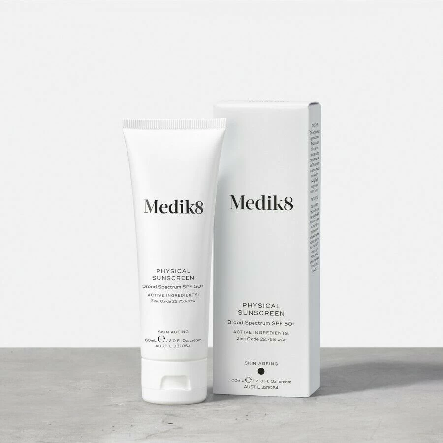 Medik8 Physical Sunscreen is our high-performance SPF 50+ sunscreen that provides powerful broad-spectrum protection from UVA and UVB rays – your daily skin defence against the sun. Medik8 Physical Sunscreen Broad Spectrum SPF 50+ is the perfect must have year round to prevent premature ageing and sun damage