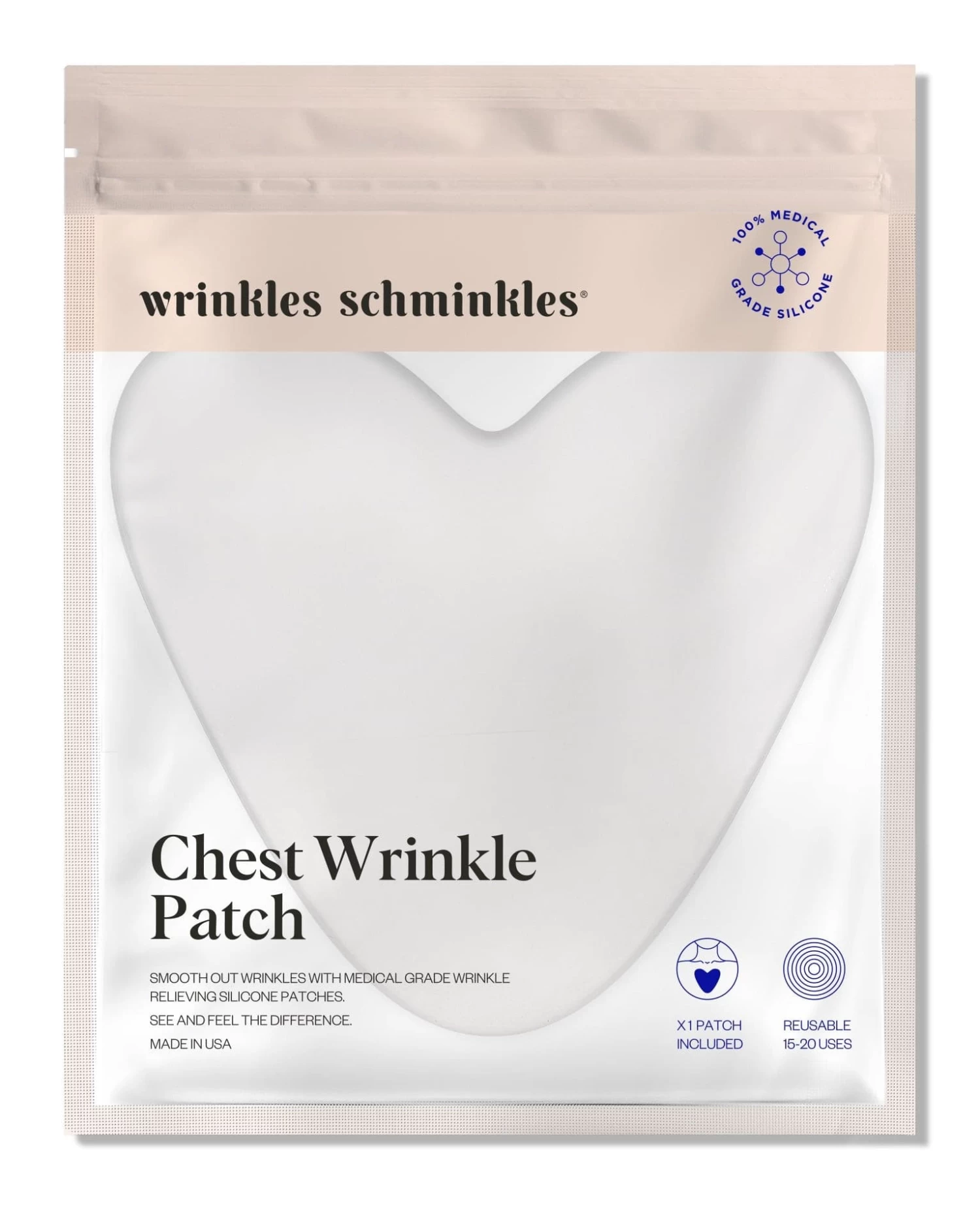 Wrinkles Schminkles Chest Wrinkle Patch is a simple, non-invasive way to reduce the appearance of chest and décolletage wrinkles caused by age, sun damage, and sleeping on your side. The 100% Medical Grade Silicone Pad is applied overnight to the skin to provide a taut, wrinkle-free surface; meanwhile, the silicone’s hydrating, moisture-filled, and collagen-stimulating properties act to visibly soften wrinkles.